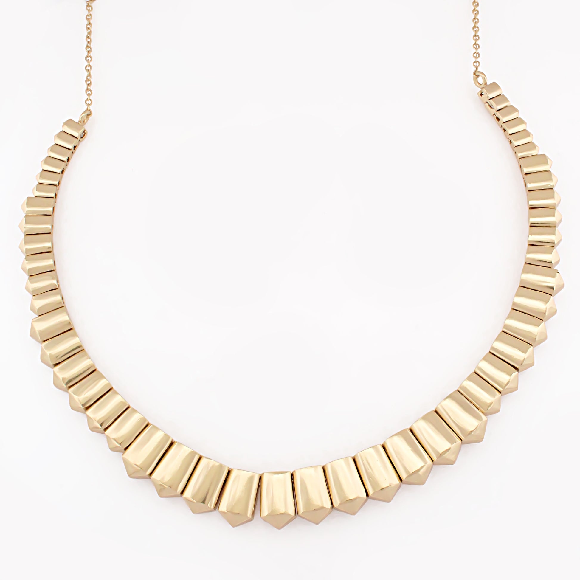 This captivating gold-toned set features a necklace and earring, all unified by a striking scale-like motif. Inspired by overlapping saffron petals or the fluid form of a serpent’s spine, each element curves gracefully with articulated links that mirror natural movement and strength.