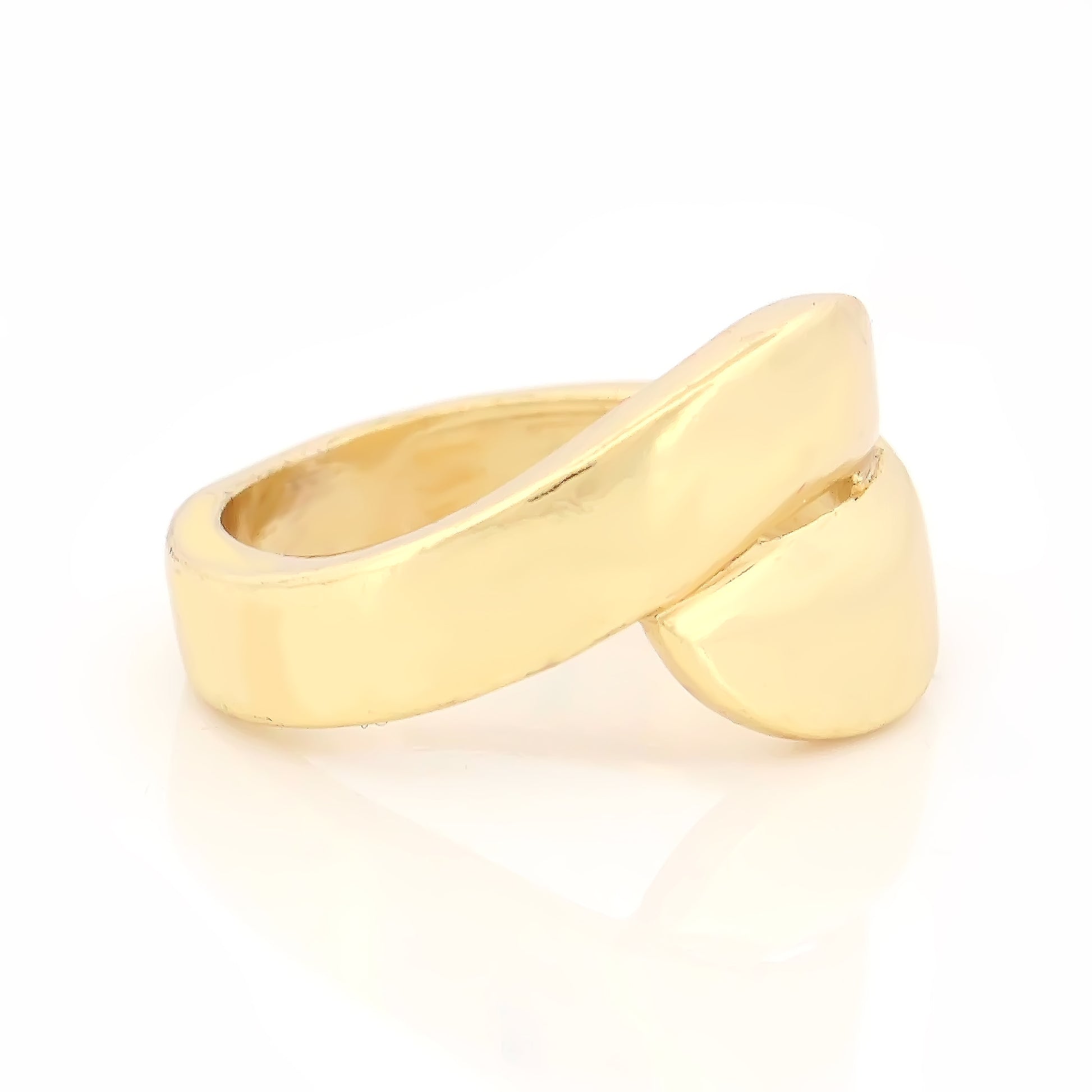 Sculpted in high-polish gold-toned metal, this wide-band ring flows with soft curves that mirror the motion of molten metal. Its organic silhouette hugs the finger in a seamless wave, exuding quiet confidence and modern minimalism—no embellishments, just pure sculptural brilliance.