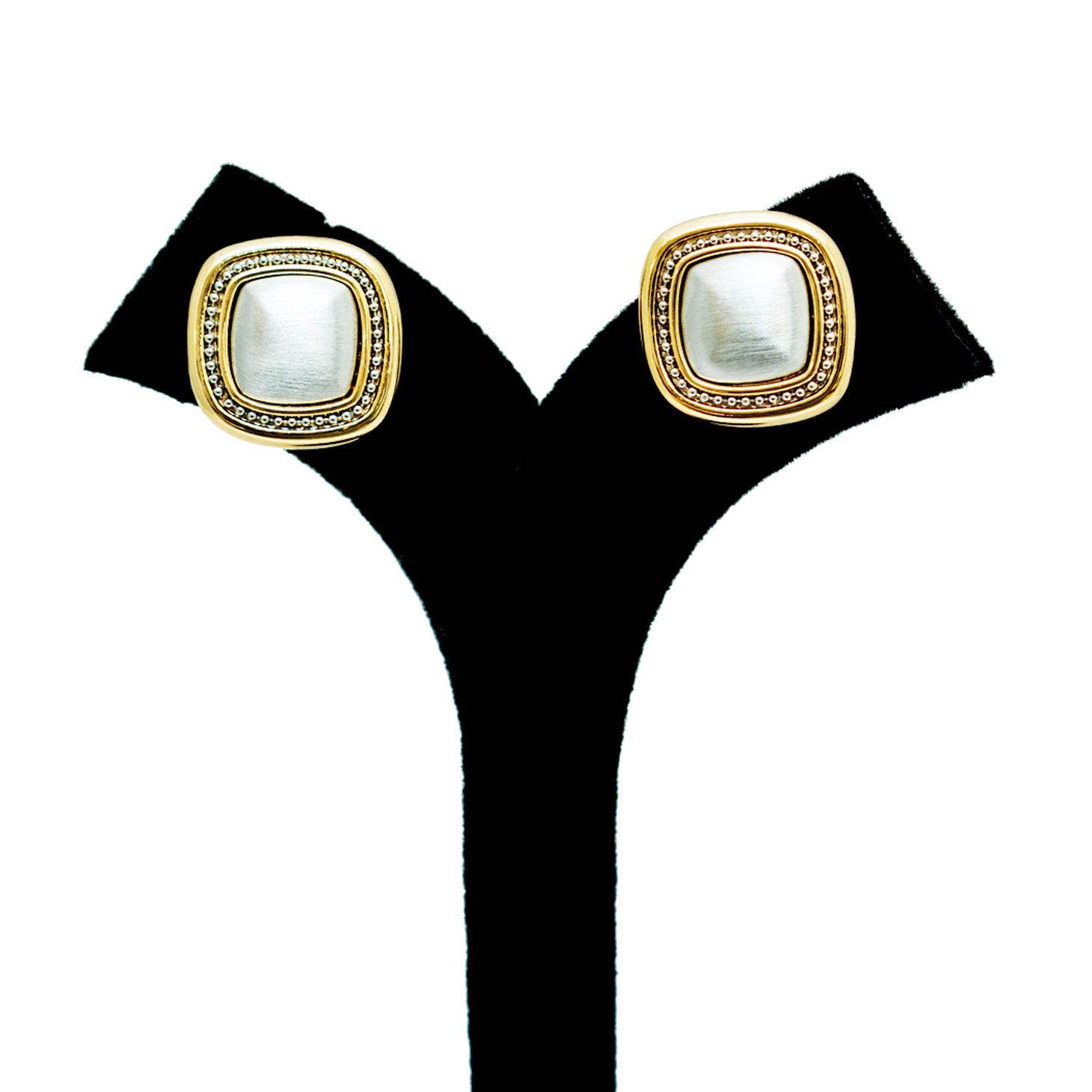 Crafted with layered metallic contours, these square studs feature a soft dome center framed by concentric golden ridges. Their design blends mid-century sophistication with contemporary charm, making them a versatile staple that speaks of quiet confidence.