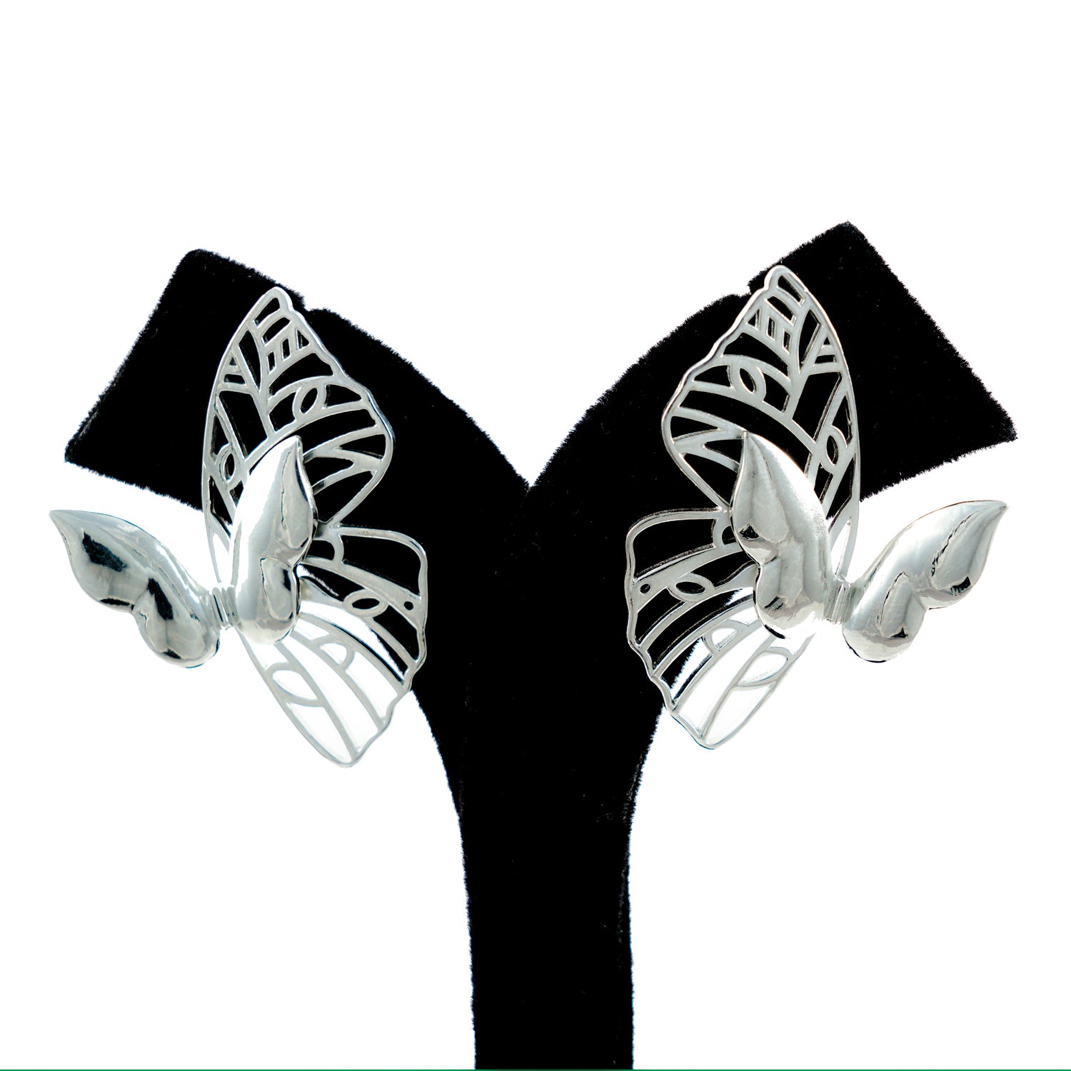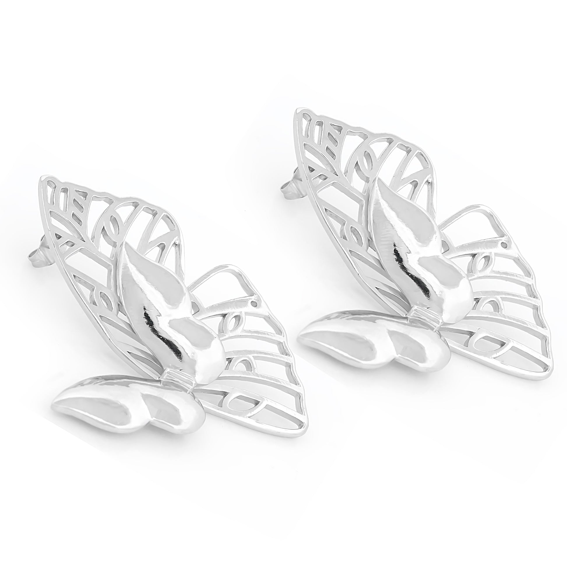 Sculpted in high-polish silver-toned metal, these butterfly-inspired studs feature delicately cut open wings, capturing a moment mid-flight. Light as air yet full of meaning, they reflect both fragility and resilience—like moonlight dancing across quiet skies.