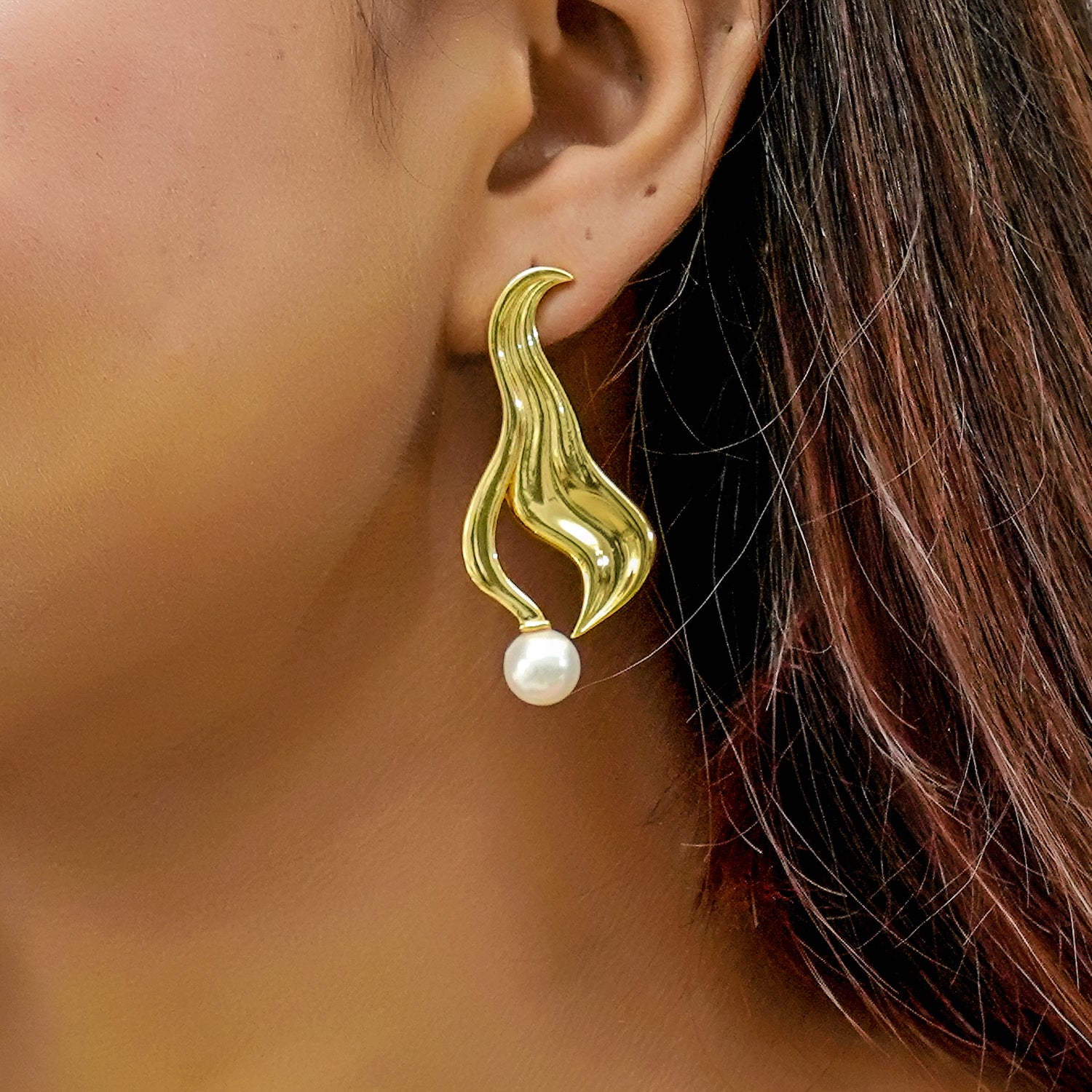 Every piece tells a story, and The Ocean Flame Earrings capture a fierce serenity—where golden flames ripple into the calm of oceanic pearls.